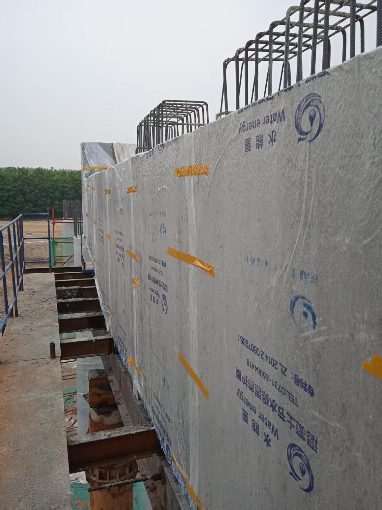 混凝土節水保濕養護膜,是以新型可控高分子吸水材料為核心,以塑料薄膜為載體,通過設備加工復合而成的卷材產品。其中高分子材料可吸收自重200倍的水分子, 吸水膨脹后變成透明的晶狀體,把液態水變成固態水,每平方米養護膜可蓄水0.5KG,成為一個固態的微型水庫,然后通過毛細管的作用向混凝土養護面滲透, 同時不斷吸收混凝土在水化過程中產生的蒸發水,因此在一個養護期內總能保持混凝土表面濕潤。